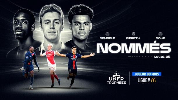 Les nommés pour le septième Trophée UNFP du Joueur du Mois de la saison 2024-2025 sont désormais connus : Mika Biereth (AS Monaco), Ousmane Dembélé (PSG) et Désiré Doué (PSG).