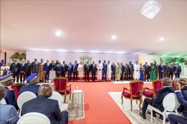 Le Président de la République, S.E.M Alassane Ouattara, proclamé définitivement vainqueur le 04 novembre dernier, au terme de l’élection présidentielle du 25 octobre 2025, a prêté Serment solennellement, ce lundi 08 décembre 2025, au Palais de la Présidence de la République, en présence de la Première Dame, Mme Dominique Ouattara, des Chefs d’État de la Gambie, du Sénégal, de la Mauritanie, du Ghana, du Libéria, de Djibouti, du Gabon, des Comores, de l’Angola, du Congo-Brazzaville, de la Sierra Leo…