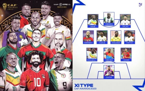 Selon la CAF, l’Equipe-type africaine de l'année 2023 se dessine comme suit : Aux buts : Onana Défenseurs : Koulibaly - Mbemba - Hakimi Milieux : Amrabat - Kudus - Angussa - Partey Avants…