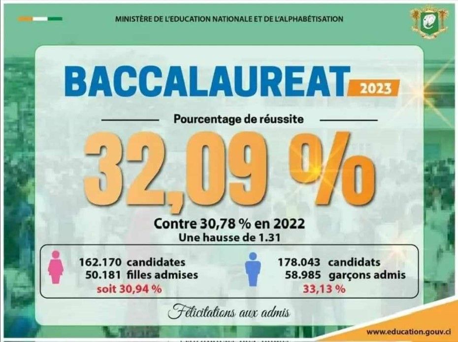 Les résultats du baccalauréat ivoirien ont été proclamés ce lundi 24 juillet 2023 à Abidjan